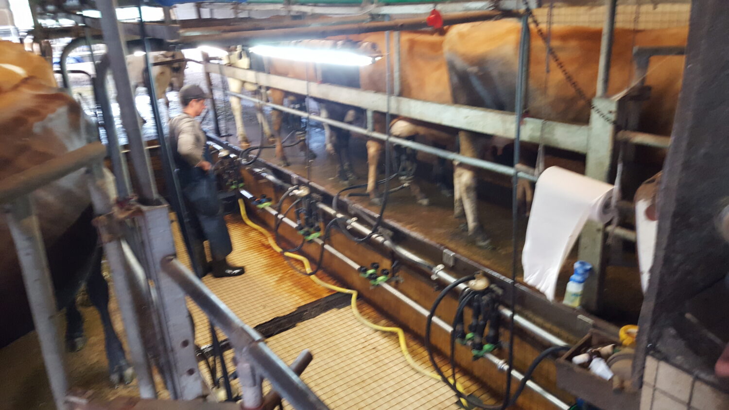 Nous avons visité les bâtiments des veaux (différents selon leur âge), la stabulation, la salle de traite. Nous avons utilisé une baratte électrique pour fabriquer du beurre que nous avons dégusté sur des tartines de pain à 16 heures !